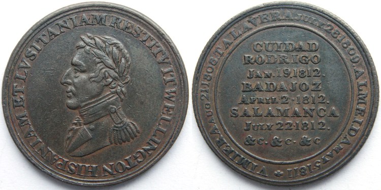 Scarce Picard’s Duke of Wellington Hull (Yorkshire) Anglo Canadian halfpenny token. Obverse: Bust of Wellington, wearing laurel. Reverse: Legend in centre and round periphery listing major battles and their dates. Diagonally milled edge (//////). These Peninsular War tokens are thought to have been issued by Picard, the owner of the Hull Lead Works, who spent some of his time in London and took to gambling his fortune away, eventually becoming bankrupt in 1827 and dying in reduced circumstances in 1843. Listed in Paul & Bente Withers' "British Copper Tokens 1811-1820" as "SCARCE". Interesting historical token in good collectable condition, see photograph. Withers No: 1516, Davis Yorkshire No: 105(var). Diameter 27.7mm. (↑↑) VF+. £25.00 e-mail David at enquiries@abccoinsandtokens.com to order. |