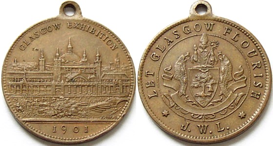 Scottish Exhibition Glasgow 1901, brass (with loop). (Glasgow Lanarkshire)