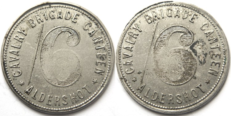 Aldershot Cavalry Brigade Canteen silvered brass sixpence. May be the "German Silver" variety BMT 056B.