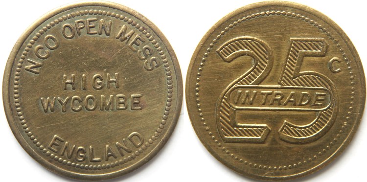 RAF High Wycombe NCO Open Mess Brass 25 Cents.