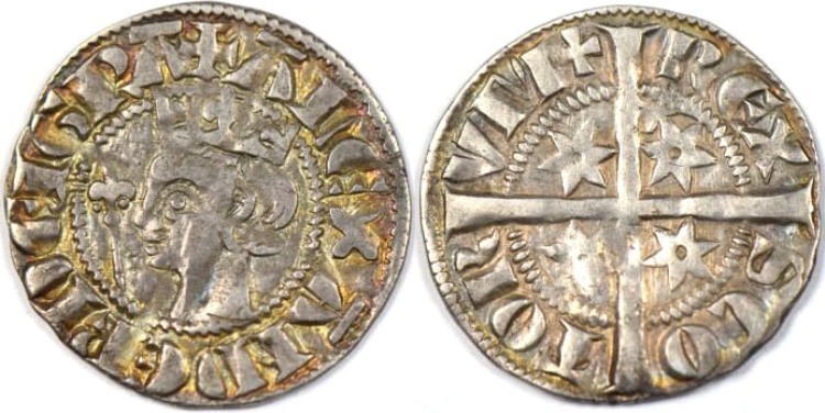 Alexander III (1249-1286), silver hammered penny, second coinage, class Bd/M mule. Obverse: Bust to left with legend: "+ALEXANDER DEI GRA". Reverse: Four mullets of six points giving a total of twenty-four points thus indicating a supposed mint town of Berwick, with legend: "REX SCOTORVM+". Lovely collectable condition with peripheral gold toning, see photograph. Spink No: S.5052 (variety of). Diameter 19.1mm. VF. £275.00 e-mail David at enquiries@abccoinsandtokens.com to order. |
