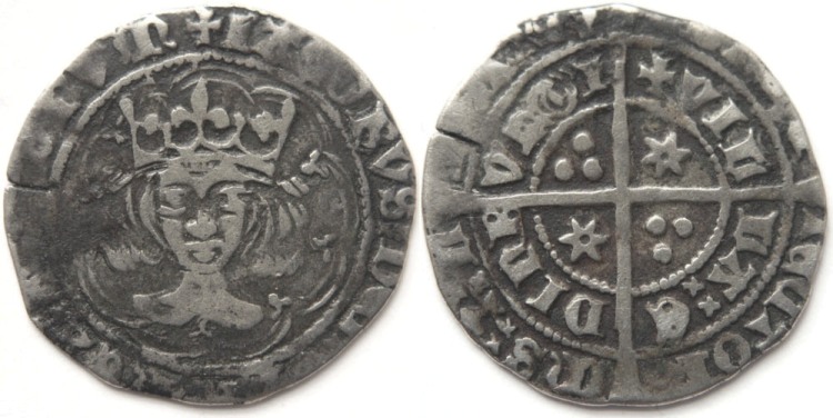 James III (1460-1488), silver groat (twelve pence), Light Issue III (1475), Edinburgh mint. Obverse: Tressure of ten arcs with facing bust, crown of three tall fleurs, mm cross pattée with double saltire stops. Reverse: Long cross with six-pointed pierced mullets in first and third quarters, triple pellets in second and fourth quarters, legend with double saltire stops, obverse 5, reverse C. Reasonable condition for type, has been clipped, see photograph.